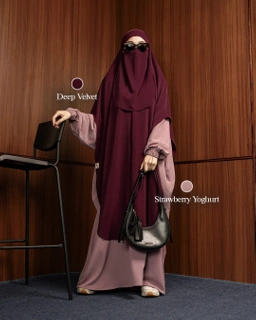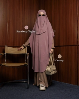 - Simple Casual Outfit, nyaman dipakai sehari-hari. Sat Set & Ringkes, dengan model Khiban (Khimar Bandana) yang memudahkan saat pemakaian dan fit di semua bentuk wajah.