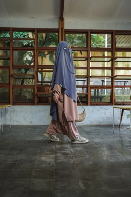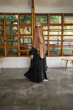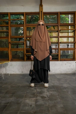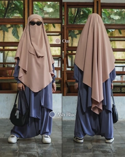 Dengan French Khimar yang lebar, nyaman dipakai dan sat set, dan tali kecil untuk cadar dagu.